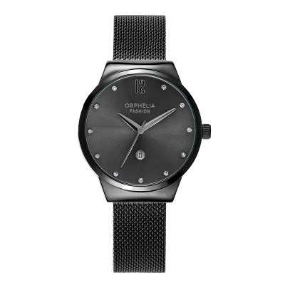 Orphelia Fashion Womens Analogue Watch Optima with Stainless Steel Mesh Band,Black