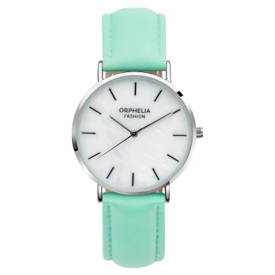 Amazon MarketplaceCLASSY DESIGN: This Orphelia Fashion Analogue watch with a Miyota Japanese Quartz movement has a very comfortable Genuine Leather strap and it's also a great gift for family and friend. PREMIUM QUALITY: By using high-quality materials, Glass: Mineral Glass, Case material: Alloy, Bracelet material: Leather- Water resistant: 3 bars COMPACT SIZE: Case diameter: 36 mm, Height: 6 mm, Strap- Length: 20 cm, Width: 17 mm. Due to this practical handy size, the watch is absolutely for everyday use-Weight: 28 g NOBLE COLOUR: The classic colours will go great with any outfit . It enables you to easily spice up a normal outfit and add style to your life- Case Colour: Silver, Dial Color: Mother of pearl, Band Color: Green COMPLETE PACKAGE : The watch is delivered in a Beautiful , original Orphelia Giftbox and 2 years warranty