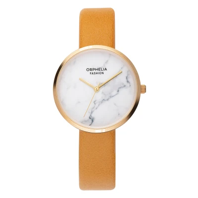 This Orphelia Fashion Tiffany Analogue Watch for Women is the perfect timepiece to wear or to gift. It's Gold 34 mm Round case combined with the comfortable Brown Leather watch band will ensure you enjoy this stunning timepiece without any compromise. Operated by a high quality Quartz movement and water resistant to 3 bars, your watch will keep ticking. CLASSIC DESIGN: Orphelia Fashion watch with a Seiko Quartz movement has a leather band. The matching colours of the special marble dial and strap will add style to your life PREMIUM QUALITY: By using high-quality materials Glass: Mineral Glass Case material: Alloy Bracelet material: Leather - Water resistant: 3 bars COMPACT SIZE: Case diameter: 34 mm Height: 8 mm Strap- Length: 19 cm Width: 14 mm. Due to this practical handy size the watch is absolutely for everyday use-Weight: 23 g
