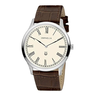 AMAZING DESIGN: Ulrta thin Analogue Men's Watch with a stable Quartz-movement PREMIUM QUALITY: By using high quality materials - Glass: Mineral Glass - Case material: Stainless steel - Band material: Leather - Waterproof: 3 bars PERFECT SIZE: - Case diameter: 42 mm - Height: 6 mm - Band: length: 21 cm, width: 22 mm. With this great size, this watch is absolutely ideal for everyday use - Weight: 38 grams NOBLE COLOUR: The classic colours will go great with any outfit . It enables you to easily spice up a normal outfit and add style to your life- Case Colour: Silver, Dial Color: Silver, Band Color: Brown COMPLETE PACKAGE : The watch is delivered in a Beautiful, original Orphelia Giftbox and 2 years warranty