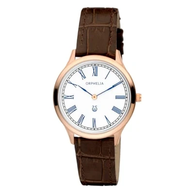Amazing design: ultra thin analogue women watch with a stable quartz-movement. it has roman numeral Premium quality: by using high quality materials ✓ glass: mineral glass ✓ case material: stainless steel ✓ band material: leather ✓ waterproof: 3 bars Perfect size: ✓ case diameter: 33 mm, ✓ height: 5 mm, ✓ band: length: 20 cm, width: 16 mm. ✓ weight: 23 grams Noble colour: the classical colours will go great with any outfit . it enables you to easily spice up a normal outfit and add style to your life.- case colour: ip-rose, dial color: silver, band color:brown Complete package : the watch is delivered in a beautiful , original orphelia giftbox and 2 years warranty