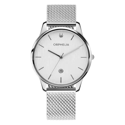 AmazonSIMPLE DESIGN: This Orphelia Portobello Analogue watch includes a Miyota Japanese Quartz movement and date display. Orphelia High quality stainless steel Mesh strap will provide you with a sophisticated and elegant look. PREMIUM QUALITY: By using high-quality materials Glass: Mineral Glass Case material: Stainless steel Bracelet material: Stainless steel- Water resistant: 3 bars COMPACT SIZE: Case diameter: 41 mm Height: 10 mm Strap- Length: 21 cm Width: 20 mm. Due to this practical handy size the watch is absolutely for everyday use-Weight: 94 g NOBLE COLOUR: The classic colours will go great with any outfit . It enables you to easily spice up a normal outfit and add style to your life- Case Colour: Silver Dial Color: Silver Band Color: Silver COMPLETE PACKAGE : The watch is delivered in a Beautiful , original Orphelia Giftbox and 2 years warranty