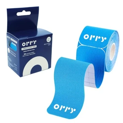 ORRY Kinesiology Tape Joint Support & Muscle Pain Relief Latex Free, Water Resistant, Elastic Cotton Pre Cut Roll, 20 Strips (Blue)