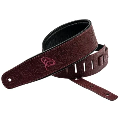 Ortega Guitars Adjustable Guitar Strap Acoustic / Bass, Electric Bass Byzantine Series Genuine Leather, Bordeaux (OSBY 5)