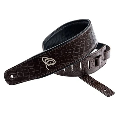 Ortega Guitars Adjustable Guitar Strap Acoustic / Bass, Electric Bass Custom Series Genuine Leather, Dark Brown Lizzy (OSCU 3)