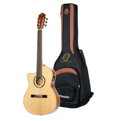 Ortega Guitars Classical Guitar Left Handed Electro Acoustic, 4/4, Slim Neck, Thinline Body Performer Series Including Gig Bag Solid Sitka Spruce / Sapele, Natural (RCE138 T4 L)