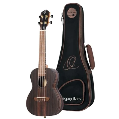 Ortega Guitars Concert Ukulele Lefthanded Acoustic Timber Series Including Gigbag Ebony, Natural (RUEB CC L)