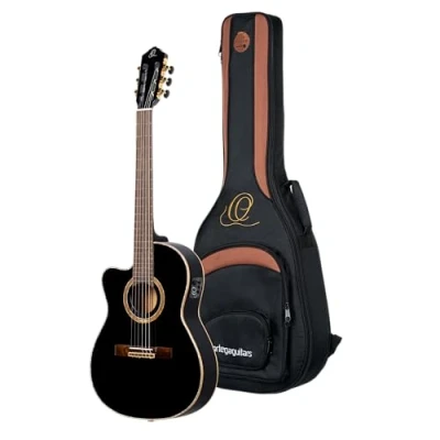 Lefty model – This guitar is made for left-handed musicians and offers adaptation and comfort while playing Electro-acoustic – The active preamp with tuner ensures a seamless volume control and easy tuning Slim neck – The slim guitar neck can be gripped pleasantly and makes it easier to grip chords Including bag – A padded gig bag with backpack straps to transport the guitar is included Performer Series – This series offers guitars with solid wood tops and in different wood combinations SOLID Canadian Spruce top, African Mahogany back & side, gloss finish, ORTEGA MagusPro System, Black - left handed Thin line body, Spanish Heel, Curved Fretboard (48 mm nut) 650 mm Scale, Cutaway, Left-hand 12-Hole Bridge, 2-Way Truss Rod, Ortega MagusPro Preamp/Pickup System with Built-in Tuner Mahogany neck, Rosewood fretboard and bridge Includes Free Deluxe gig bag & strap