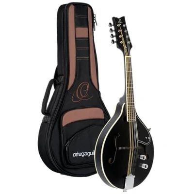 Ortega Guitars RMAE40SBK A Style Series Mandolin with Spruce Top/Maple Body and Pickup, Black Stain Finish