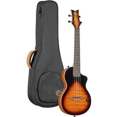Ortega Guitars Tenor Ukulele Electro Acoustic Solid Body Neo Series Including Gig Bag Flamed Maple/Okoume, Black/Brown (NEO U TSB)