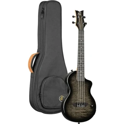 Ortega Guitars Tenor Ukulele Electro Acoustic Solid Body Neo Series Including Gig Bag Flamed Maple/Okoume, Black/Grey (NEO U TGB)