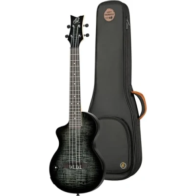 Ortega Guitars Tenor Ukulele Left Handed Electro Acoustic, Solid Body Neo Series Including Gig Bag Flamed Maple/Okoume, Black/Grey (NEO U TGB L)