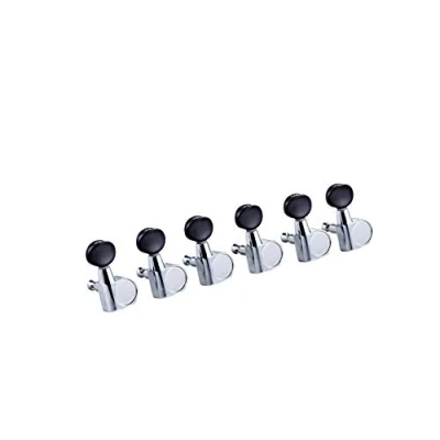 Guitar Tuning Machines Chrome Die Cast Sealed Machines with Black Buttons Set Includes 6 In-Line-Right-Hand Tuning Machines with Nut, Threaded Hex Bushings & Mounting Screws Ratio 14:1 Designed to Fit 10 mm Peg Holes for Electric & Acoustic Guitars