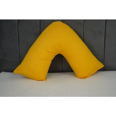 Orthopaedic V pillow with Free pillowcase Pregnancy Support Shaped Triangle polycotton 74x34cm Hollow Fibre for Neck,Maternity (Mustard)