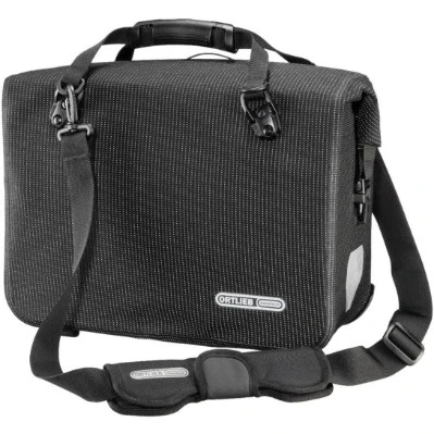 High visibility on the road is critical to ensure that you will be safely seen.ORTLIEB offers highly reflective solutions in the range of waterproof bike panniers: the High Visibility Line! The PU laminated Cordura fabric in black is interwoven with highly luminous reflective yarn. In the dark, the complete bag is rendered into a reflector. A trip at night is now safer as the fabric enhances your visibility and makes your presence highly visibly.An elegant black bag during the day, and a reflective safety shield at night! The High Visibility Office-Bag is ideally suited for your ride to the office, offering you plenty of space for two DIN A4 folders, writing utensils and other workday items. The bag comes with a comfortable shoulder strap and stable feet.The bag is available in two versions: with QL2.1 or QL3.1 mounting system.This bag with the Quick-Lock3.1 mounting system comes with the studs neccessary for luggage racks that feature QL3.1 compatible mounting points. If you want to use the bag on a rack without an integrated QL3.1 mount, you will need an additional mounting set. The mounting set weighs only 140 g and attaches securely to the rack. Our Quick-Rack comes with all the neccessary parts, you don't need the studs nor the mounting set.Specification:Colorblack reflectiveMaterialPS50CXBag TypesingleMounting SystemQuick-Lock3.1Weight1400 g | 49.4 ozHeight30 cm | 11.81 inchWidth40 cm | 15.75 inchDepth17 cm | 6.69 inchVolume21 L | 1281 cu.inchLoad9 kg | 19.8 lbs