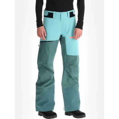 Ortovox 3L Ravine Shell women's hardshell ski pants. Designed for alpine skiing and ski touring, these three layer pants combine a robust shell fabric with technical features that favour movement and protection in wet, variable conditions. The shell uses a Dermizax NX membrane by Toray with a water column rating of 20,000 mm and a breathability rating of 32,000 g/m²/24h. Fabrics include polyamide and polyurethane layers with a DWR finish to shed moisture, plus targeted Cordura reinforcements for abrasion resistance. Virgin wool is incorporated in selected areas for added next-to-skin comfort where appropriate. Functionality is practical and considered. The waist is adjustable and fitted with belt loops for a personalised fit. Zippered ventilation openings allow airflow on demanding ascents. Preformed knees improve freedom of movement while the loose fit accommodates base layers. Inner snow gaiters at the leg ends keep powder out and integrate with alpine boots. Storage and durability are addressed with secure zip pockets and reinforced lower leg construction to resist wear from edges and crampons. The construction is aimed at users who need a tough, breathable hardshell that performs during long approaches and variable weather on the mountain.