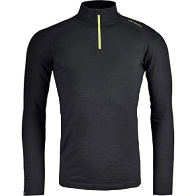 ORTOVOX Men's 145 Ultra Zip Neck Long Sleeved, mens, sleeves., 8438800012, black raven, M