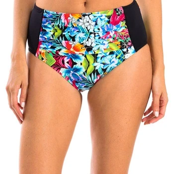 Women's high bikini briefs. Basic cut with fully lined bottoms and multicolored low-cut leg. Color Black-floral print Avant-garde fabric with high molding power, high resistance to chlorine, tanning creams and oils, and excellent moisture absorption properties. Composition: Exterior: 80% Polyamide, 20% Elastane; Interior: 73% Polyester, 18% Elastane, 9% Polyamide. Handwash. Do not iron or use bleach. Do not tumble dry. Do not twist to drain. Composition: Exterior: 80% Polyamide, 20% Elastane; Interior: 73% Polyester, 18% Elastane, 9% Polyamide. Care: Handwash. Do not iron or use bleach. Do not tumble dry. Do not twist to drain.
