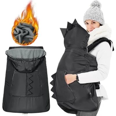 Orzbow Weatherproof Cover for Baby Carrier,Waterproof Winter Carrier Cover,Universal Wind with Zip,Warm Liner,Removable Drawstring Hood,Machine Washable (Black Dino)