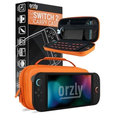 Orzly Carry Case for Nintendo Switch 2 2025 Console 7.9 inch Screen Protection Hard with Smart Storage Accessories and Games Pockets Gift Box Edition (Orange 2)