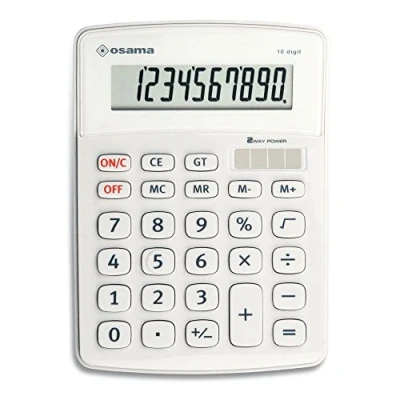 10 Digit Calculator with 4 Key Memory for Office Home School Large tilted LCD display, which makes the numbers very clear and easy to read. Auto power off Powered by solar energy and battery. The solar panel will fully supply the calculator as long as it is used in an illuminated room. Perfect companion for on the go thanks to its compact size. Soft touch keyboard comfortable to use Colour: white. Discover all available models and colours