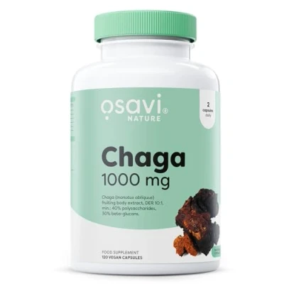 OSAVI Chaga Mushroom Extract Capsules, 1000mg, 120 Vegan Caps, Standardised 40% Polysaccharides and 30% Beta glucans, Clean Label, Made in Poland