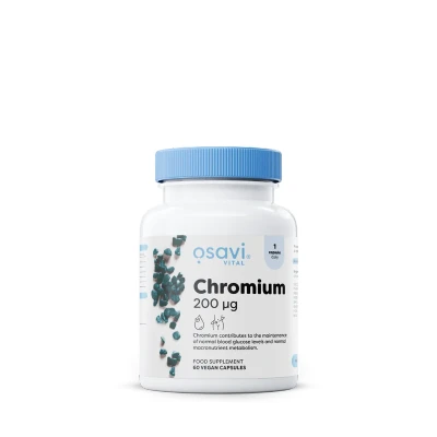 Osavi Chrom, 200mcg - 60 Vegan Capsules provide essential chromium to support metabolism, regulate insulin sensitivity, and help maintain healthy blood glucose levels. Supplementation may reduce snack cravings and prevent deficiency, promoting overall health and well-being.