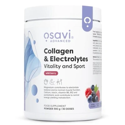 Osavi Collagen & Electrolytes Vitality Sport 390 g Wild Berry Flavour TENDOFORTE® peptides 5 + B Vitamins Aquamin Mg® Support During Physical Activity