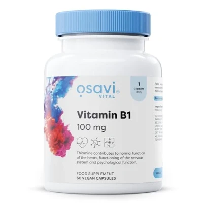 Osavi Vitamin B1 100mg 60 Vegan Capsules Stable Thiamine Mononitrate for Energy Metabolism, Nervous System, Psychological Function, and Heart Health High Potency per Capsule