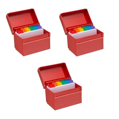 STYLISH AND FUNCTIONAL DESIGN: OSCO (3 pack) Red Hi-Gloss plastic index box features a sleek angled profile and cantilevered lid for enhanced visibility and fast access. Ideal for organising revision flashcards, recipe slips, office contacts, and everyday notes at home, office, or school with style PREMIUM QUALITY MATERIALS: (3 Pack ) Made from thick, durable high gloss plastic, this sturdy index box includes (free !) 100 lined 100gsm note cards and A to Z dividers, providing long-lasting organisation and a professional, stylish appearance suitable for home, office, or classroom. COMPACT AND PRACTICAL DIMENSIONS: Measuring H123 x W162 x D128 mm and weighing 0.65 kg, this regular index box fits neatly on desktops or shelves while storing flashcards, recipe notes, or office contacts efficiently, Holds A6 (105 x 148 mm) Cards. Multipack options offer added value. VERSATILE ORGANISATION SOLUTION: Ideal for students, professionals, or home users, this white hi-gloss index box keeps revision flashcards, recipe notes, and office contacts organised. Easy access, full visibility, and A to Z divider tabs simplify categorisation and make daily filing effortless. TRUSTED UK BRAND: OSCO is a respected UK brand with over 25 years’ experience supplying office and homeware products across the UK and Europe