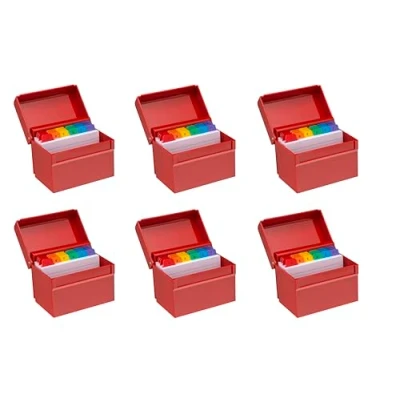 STYLISH AND FUNCTIONAL DESIGN: OSCO (6 pack) Red Hi-Gloss plastic index box features a sleek angled profile and cantilevered lid for enhanced visibility and fast access. Ideal for organising revision flashcards, recipe slips, office contacts, and everyday notes at home, office, or school with style PREMIUM QUALITY MATERIALS: (6 Pack ) Made from thick, durable high gloss plastic, this sturdy index box includes (free !) 100 lined 100gsm note cards and A to Z dividers, providing long-lasting organisation and a professional, stylish appearance suitable for home, office, or classroom. COMPACT AND PRACTICAL DIMENSIONS: Measuring H123 x W162 x D128 mm and weighing 0.65 kg, this regular index box fits neatly on desktops or shelves while storing flashcards, recipe notes, or office contacts efficiently, Holds A6 (105 x 148 mm) Cards. Multipack options offer added value. VERSATILE ORGANISATION SOLUTION: Ideal for students, professionals, or home users, this white hi-gloss index box keeps revision flashcards, recipe notes, and office contacts organised. Easy access, full visibility, and A to Z divider tabs simplify categorisation and make daily filing effortless. TRUSTED UK BRAND: OSCO is a respected UK brand with over 25 years’ experience supplying office and homeware products across the UK and Europe