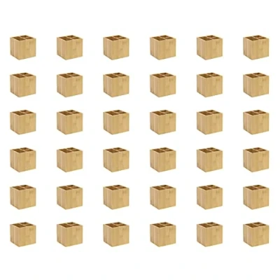 OSCO Bamboo Square Pen Pot with 3 Compartments Natural Sustainable MOSO Desk Organiser & Makeup Brush Holder Wood Pencil Cup for Office, Home, Vanity H10xW10.5xD10.5 cm, 36 Pack
