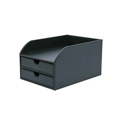 OSCO Black Faux Leather 2 Tier Sorter with Letter Tray A4 Drawers Desk Tidy Document Storage Paperwork Organiser File Holder 35 x 25 18.5 cm