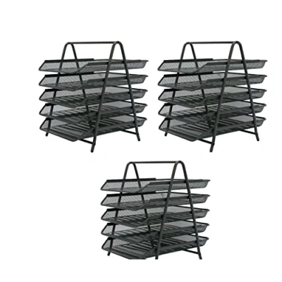 OSCO Graphite Wire Mesh 5 Tier Letter Tray 3 Pack A4 Desk File Organiser Paper Storage Office Document Sorter Paperwork Filing Easy Assembly H37.3 x W29.5 D34.0 cm