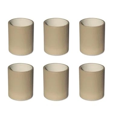 OSCO Light Taupe Faux Leather Pen Pot 6 Pack Pencil Holder Desk Tidy Office Organiser Makeup Storage Cosmetics Display H10.5 x W8.7 D8.7 cm