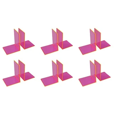 OSCO Neon Acrylic Medium Bookends 6 Pack Pairs 12 Clear Rubber Pads Non Slip H17.2 x W12 D12 cm