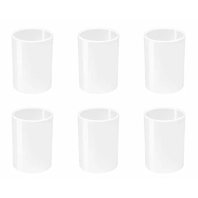 Osco White Plastic Pen Pot 6 Pack Round Transparent Pencil Holder & Desk Tidy Durable Office Organiser for Stationery, Pens, Pencils Makeup Brushes H11 x W8 D8 cm