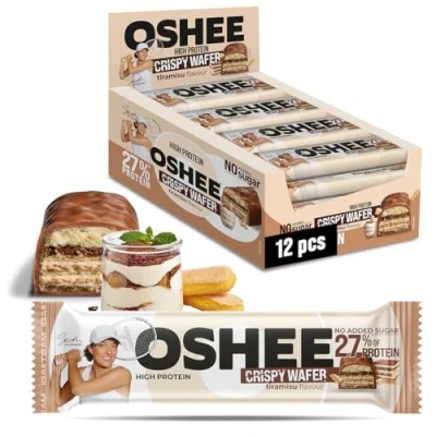 OSHEE Crispy Protein Bar with Tiramisu Flavour 37g (Pack of 12), Crunchy Snack for Energy & Fitness