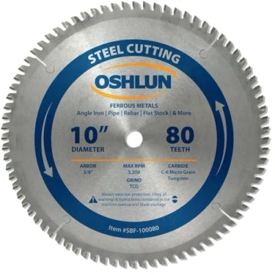 Oshlun SBF 100080 10 Inch 80 Tooth TCG Saw Blade with 5/8 Arbor for Mild Steel and Ferrous Metals