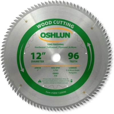 Oshlun SBW 120096 12 Inch 96 Tooth ATB Fine Finishing Saw Blade with 1 Arbor