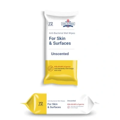 Osler & Walsh Anti Bacterial Wet wipes Unfragranced for Skin and Surfaces Pack of 72 disinfection CLINICAL settings, CARE HOMES your FAMILY