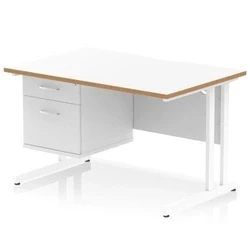 Oslo 1200 x 800mm Edge Office Desk White Top Natural Wood Cantilever Leg Workstation 1 2 Drawer Fixed Pedestal