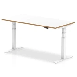 Oslo 1600mm Height Adjustable Desk White Natural Wood Edge Frame