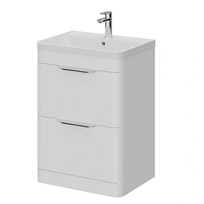 AmazonBrand Oslo Height 840mm Weight 47kg Taps Not Included 5 years Guarantee Model Number: WDB79910Transform your bathroom with our Oslo Gloss White 600mm Floor Standing 2 Drawer Vanity Unit and Polymarble Basin with 1 Tap Hole. This stunning bathroom basin unit features an outstanding two drawer design, offering you essential extra storage space in your bathroom from typically unused space.A gloss white finish and soft close technology creates a modern look and feel, while providing your bathroom with a highly practical and functional new addition. Matching items are av