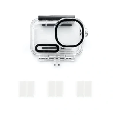 Offers waterproof protection at depths up to 60 meters for deep-water photography and videography. Compatibility:Osmo Action 6 Tips:1. Before use, close the Battery Compartment Cover and the USB-C Port Cover, and tighten the Glass Lens Cover. 2. It is recommended to install Waterproof Case for long-term underwater shooting or in environments with high water impact pressure. 3. Do not use the camera in hot springs or extreme underwater environments, or let it come into contact with corrosive or unknown liquids. Specifications:Osmo Action 6 Waterproof Case: Dimensions: 94.7×45.9×84.1 mm (L×W×H); Weight: 110 g; In the Box:Osmo Action 6 Waterproof Case × 1; Anti-Fog Inserts × 6 pairs