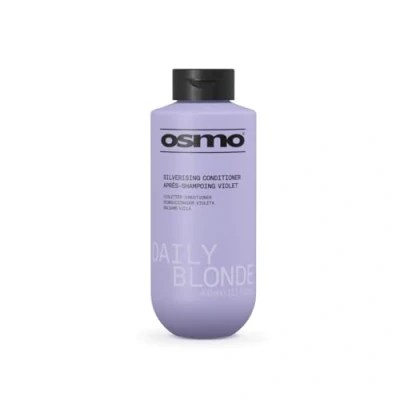 PURPLE Conditioner: Osmo Daily Blonde Silverising Conditioner is a purple toning Conditioner specifically formulated for use on superlightened, grey or bleached hair. DAILY USE: Our sulphate free Conditioner is suitable to daily use, leaving hair shiny and soft whilst gently neutralising warm tones. SILVER TONER: The purple pigments neutralises and corrects unwanted yellow and brassy hues. Effective in enhancing silver tones in white or grey hair. PURPLE PIGMENTS: Cleanse hair while depositing silverising tones into the hair. For best results, follow with Daily Blonde Silverising Conditioner. VEGAN & MADE IN UK: All our formulas are made in the UK and are all Salon Quality products. 100% Vegan. We don't, never have, and never will, test on animals.