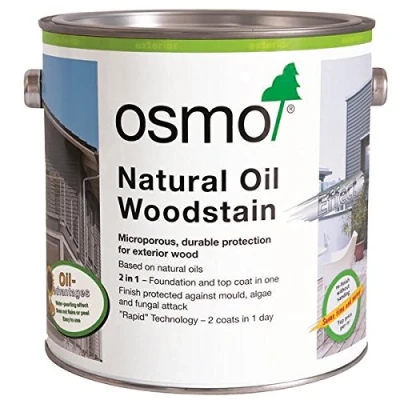 Osmo Natural Oil Woodstain Effect Satin Highly recommended for timber cladding, carports, balcony elements, screens and fences etc. Natural Oil Woodstain Effect is water-repellent and extremely weatherproof and UV-stable. The microporous surface also contains active ingredients to protect the wood against mould, algae and fungal attack. Number of coats: 2 coats on raw wood. For renovation, generally 1 coat applied to a clean and dry surface is sufficient – no sanding required!