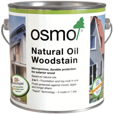 General description Osmo Natural Oil Woodstain in Mahogany is an innovative and durable protective finish that serves as both a base and top coat. It is designed for exterior wood surfaces, allowing the natural wood grain to remain visible while providing exceptional weather and UV resistance. This woodstain is highly water and dirt resistant, and it effectively reduces wood swelling and shrinkage. Its microporous, breathable finish prevents cracking, peeling, or flaking, and no sanding is necessary for future applications. Technical specifications Volume: 750ml Coverage: 26m²/L with one coat Drying time: First coat: 4-6 hours; Second coat: 12 hours Moisture content of wood: max. 20% Installation Ensure the wood surface is clean, dry, and frost-free before application. Stir well before use and do not thin the product. If possible, apply the first coat to all sides of the wood before installation. For renovation works, one coat on a clean and dry surface is usually sufficient. Usage