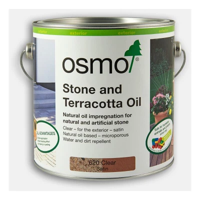 General description Osmo Stone and Terracotta Oil is a specialized oil designed for exterior stone and terracotta surfaces. It features a unique oil combination that provides protection against dirt and abrasion while being highly water-repellent. This product offers a microporous, breathable finish that does not crack, peel, flake, or blister, making it ideal for materials such as terracotta, granite, limestone, and slate. Technical specifications Drying time: 8-10 hours Coverage: 32m²/L with one coat Recommended coats: 2 coats Installation Ensure the surface is absorbent, clean, dry, and frost-free before application. Stir the oil well before use. Apply using an Osmo Flat Brush, Floor Brush, Oil Finish Applicator Fleece (Hand Pad Holder), or Microfibre Roller, ensuring a very thin application. Remove any excess product with a pad or lint-free cloth. For larger areas, excess oil can be removed with a rubber scraper and polished with a buffing machine (white pad). Allow to dry for