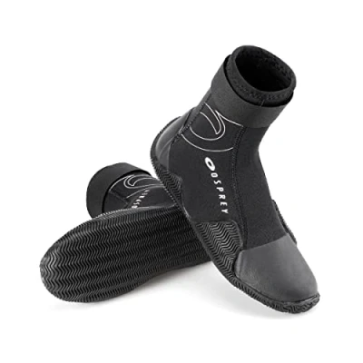 OSPREY JUNIOR NEOPRENE BOOT: the Osprey 3mm Neoprene Boots give you added protection and warmth whilst you explore the deep ocean and experience the underwater world PROTECTION AND INSULATION: These aqua boots keep your feet warm and protected from cuts and stings in the water DURABLE AND FLEXIBLE: 3mm neoprene material increases comfort and provides long-lasting use for endless fun in the deep ocean REINFORCED TOE AND HEEL: For extra foot protection when at the beach or during water sport activities ideal for kids who have high energy and enjoy water. Featuring glued and blind stitched seems with a Velcro adjuster for a secure and comfortable fit VULCANISED SOLE: Protects the bottom of your feet from harsh surfaces without limiting flexibility, includes a strong grip to make walking across a rocky beach more comfortable